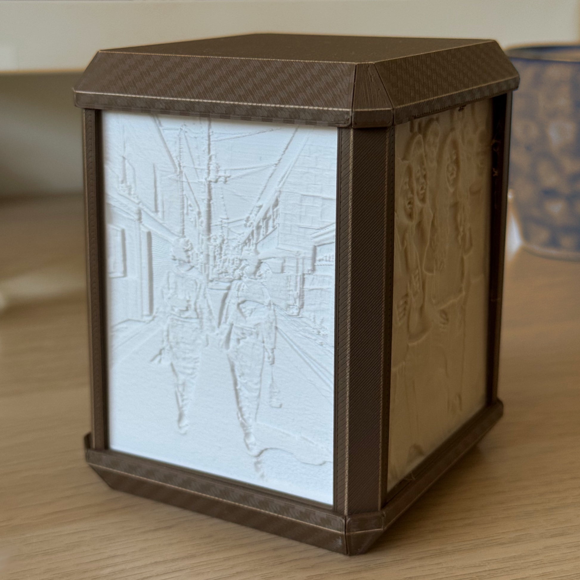 Rediscover your most cherished moments with The Lantern by Memaura — a beautifully symmetrical 3D photo light box designed to capture and illuminate your memories. Featuring four 14 cm photos, this square lantern transforms your favorite images into a glowing display, allowing you to feel and relive those special moments every time it lights up.